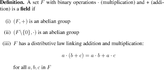 One of the axioms of the real numbers will be that they are a field, so let's take a look at some other examples of fields.