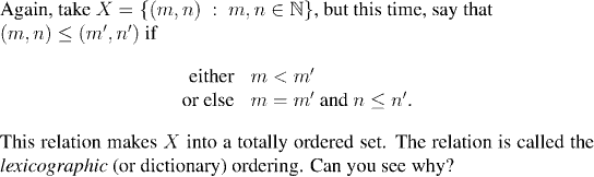 Just as the idea of field picks out the important rule for arithmetic, in the same way we now pick out the important rules for the ordering of the real numbers.