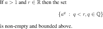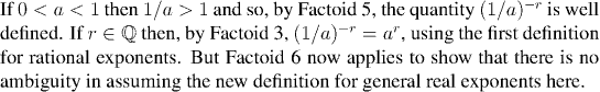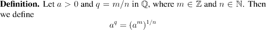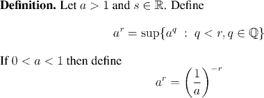 The first step in defining a^s for a real exponent, is to define it for a rational exponent. This is our next definition: