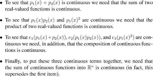 The kind of results on arithmetic of continuous functions that we've been collecting all along ought to come in here to prove that sums and products of continuous function are continuous. Let's see exactly what we need.