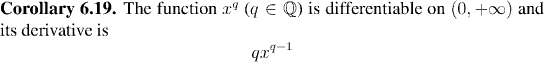 As an application of this theorem, we shall prove that the same type of formula holds for differentiating x^q for q rational as we have seen holds for x^n when n is an integer.