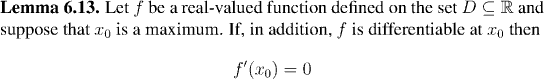 Let us see what we can say about a differentiable function at a maximum or minimum: