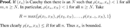 Recall that a set is bounded is one can draw a disk centered on some fixed point which contains the set. We saw in a homework exercise that if this can be done with one center, then it can be done (with different radii) for any center.