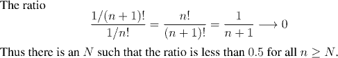 Note that it is important to get the ratio of sucessive terms to be below a