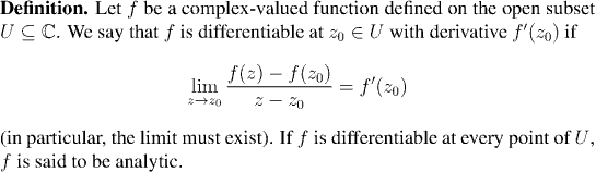 z are considered. Thus, if the complex derivative of a function exists