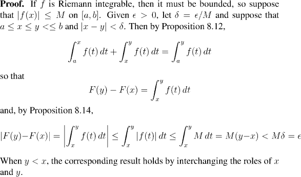 Note that the proof actually establishes that $F$ is uniformly continuous. However, this does not need special note in the statement, since